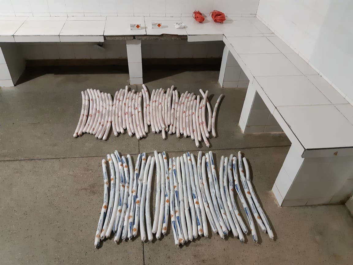 Em uma revista minuciosa no compartimento de bagagem, os policiais encontraram as “bananas” de explosivos (dinamites) do tipo emulsão encartuchada; pavis detonantes; espoletas e apetrechos que são utilizados na detonação de material explosivo.