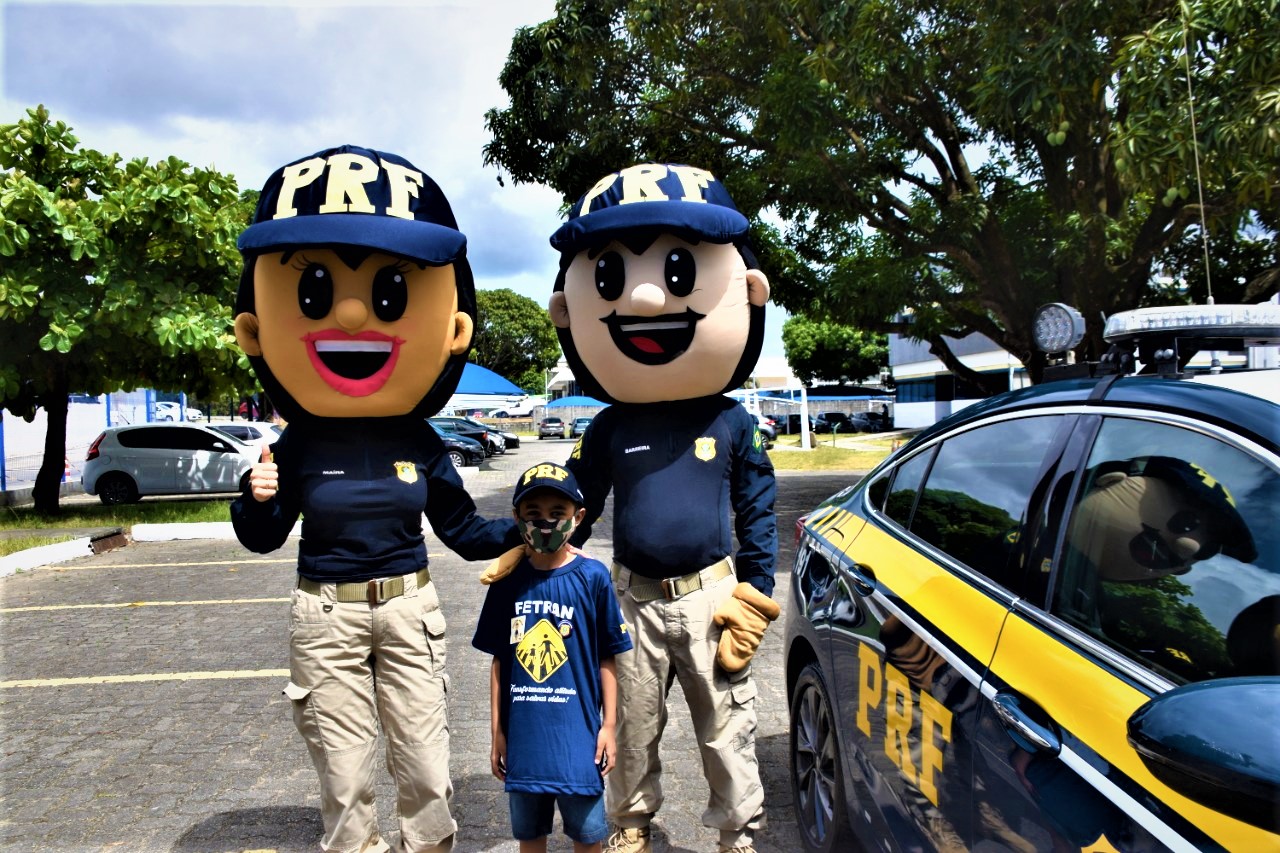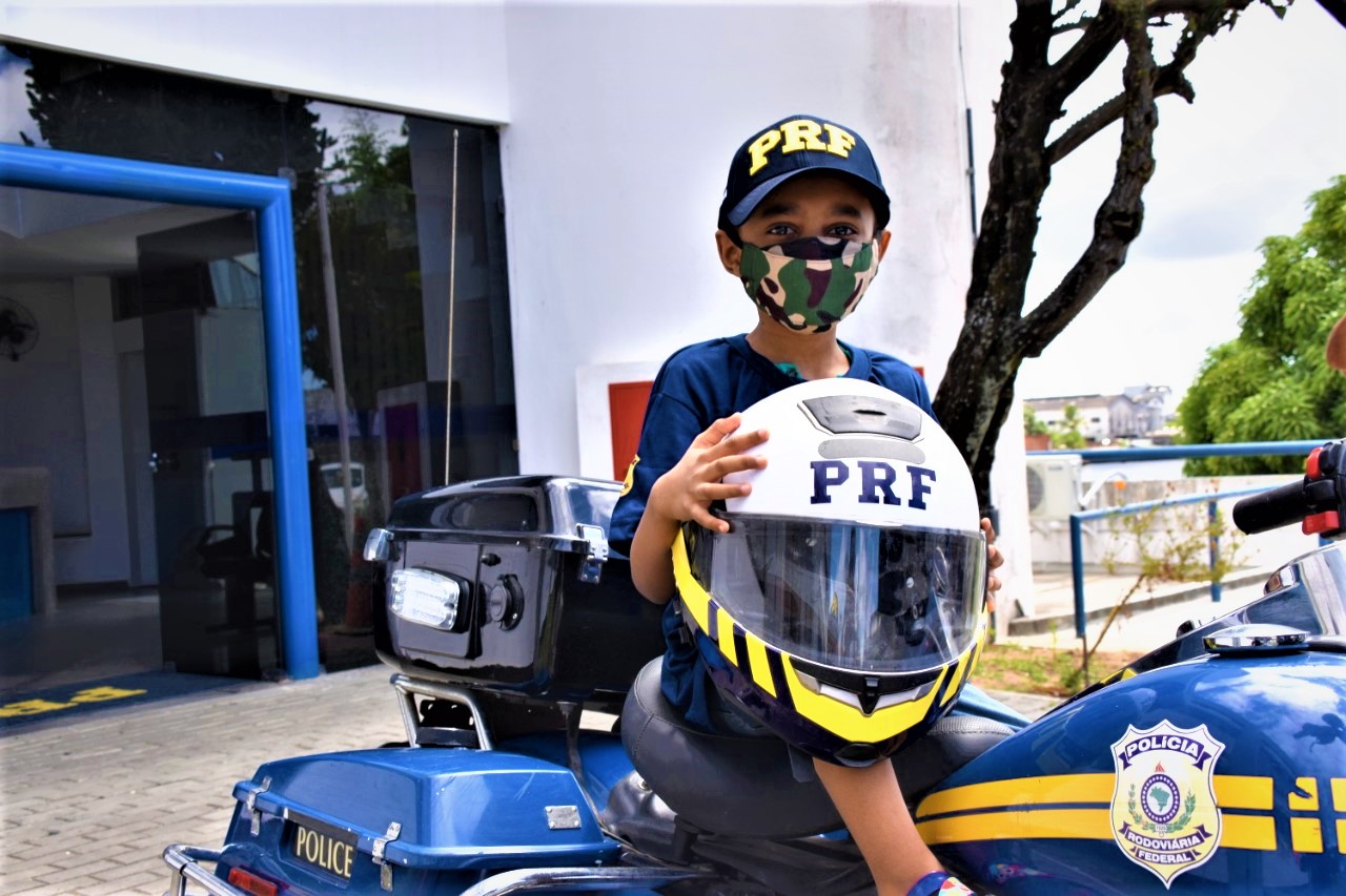 A criança chegou à Sede da Superintendência acompanhado de seu pai, onde foram recepcionados pelos PRFs. Já nas dependências Cauã recebeu um boné da instituição e foi presenteado com uma camisa simbólica alusiva às atividades voltadas à Educação para o Trânsito.