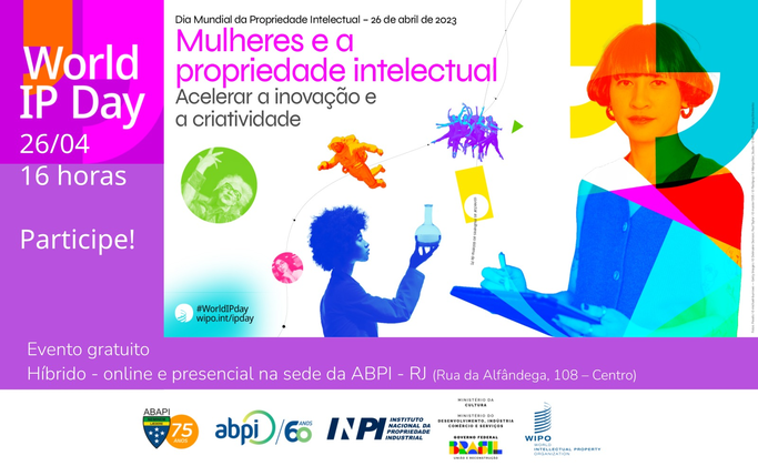 11:30 - 14:30 | ABAPI, por meio de sua seccional Sul, juntamente à Comissão Especial de Propriedade Intelectual da OAB RS, organizarão palestra-almoço para comemorar o Dia Mundial da PI. Objetivo do evento é compartilhar as experiências de mulheres que fazem a diferença em ambientes de negócios, trazendo sua força, competividade e inovação. |