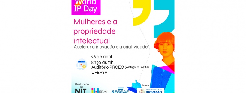 08:30 - 11:00 | Evento alusivo ao Dia Mundial da Propriedade Intelectual, a ser realizado no Auditório da PROEC (Antigo CTARN), na Universidade Federal Rural do Semiárido (Mossoró/RN). Alinhado com o tema central da WIPO, o evento conta com a participação de mulheres atuantes na Propriedade Intelectual na cidade de Mossoró, nos mais diferentes segmentos inseridos no ecossistema local de inovação. |