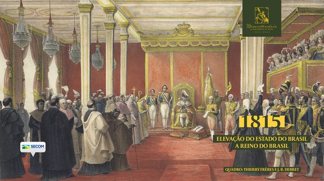 Em 1815, já com a corte portuguesa residindo em nosso país, o então Estado do Brasil foi elevado a Reino, unindo-se em igual dignidade a Portugal como Reino Unido de Portugal, Brasil e Algarves.