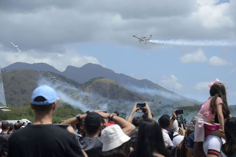 Esquadrilha da Fumaça durante a cerimônia oficial de chegada ao país do coração de Dom Pedro I