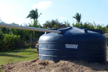 Cisternas — As cisternas são reservatórios de água produzidos em polietileno, que possuem alta durabilidade e capacidade de armazenamento de 16 mil litros. Os equipamentos são empregados pela Codevasf em benefício de comunidades rurais difusas. Eles acumulam água da chuva, que é conduzida para seu interior por meio de um sistema de calhas e tubos. Cada cisterna beneficia uma família, e a serve principalmente durante os períodos de estiagem.