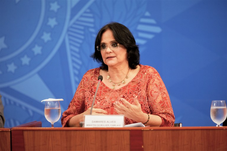 Ministra Damares Alves apresenta ações do Governo Federal durante coletiva de imprensa.