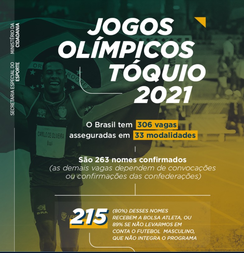 Nas Olimpíadas de Tóquio, que ocorrem de 23 de julho e 8 de agosto, participarão 91 atletas que recebem o Bolsa Pódio . Para os Jogos, o Brasil tem 306 vagas asseguradas em 33 modalidades, sendo que 263 já possuem nome confirmado.