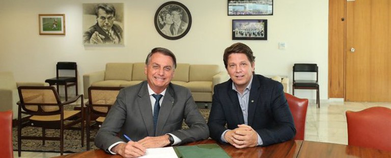 Presidente Jair Bolsonaro e o secretário Especial da Cultura, Mario Frias.