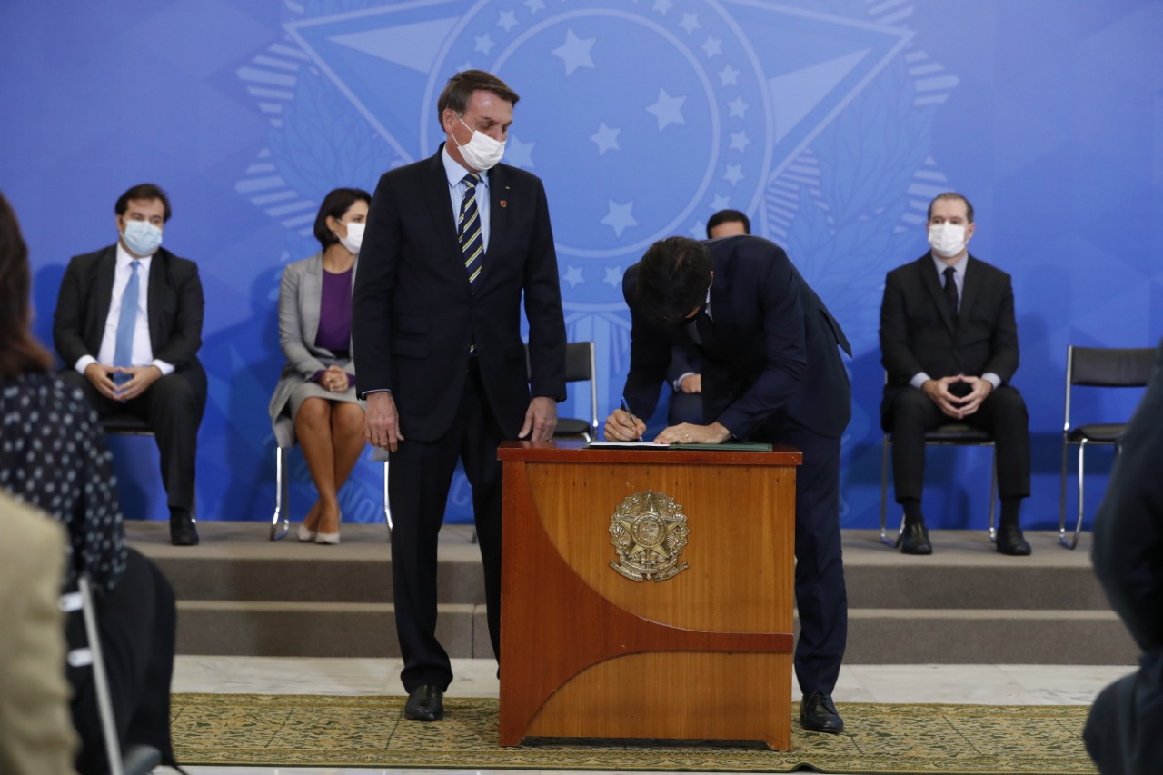 Ministro Fabio Faria assinando termo de posse no Palácio do Planalto