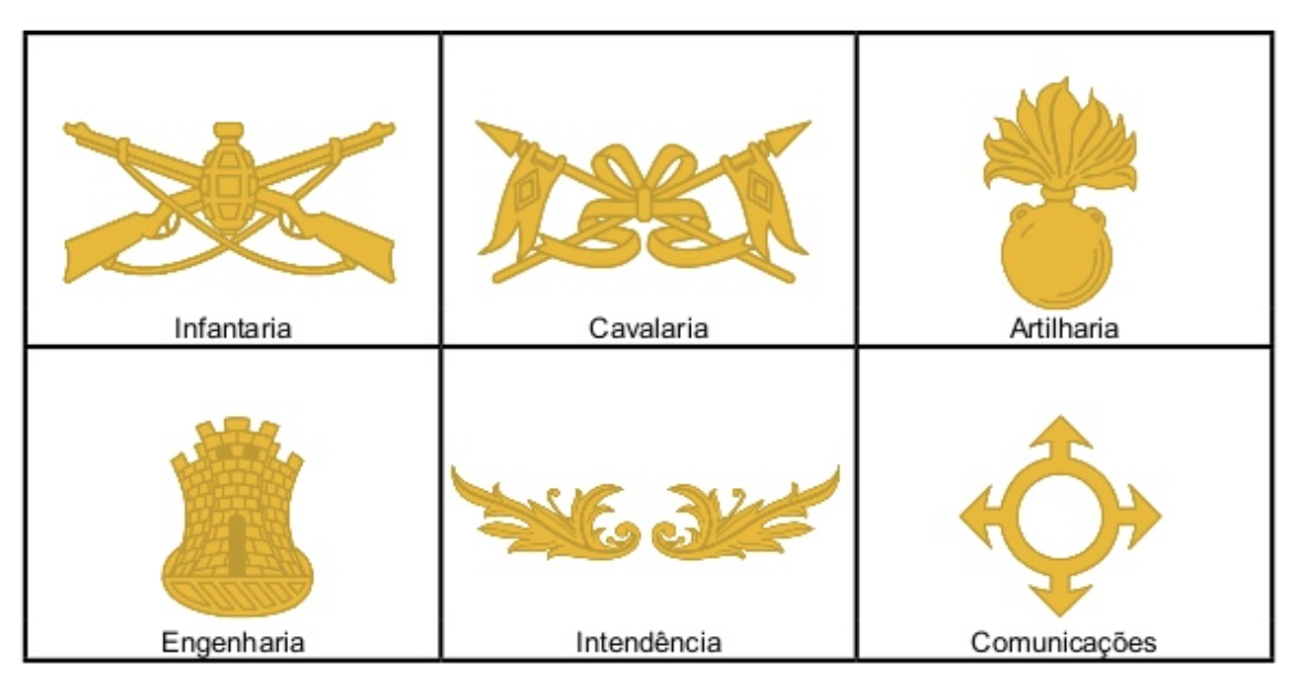 São cinco as Armas do Exército Brasileiro. A Intendência pertence aos Quadros. - Foto: Reprodução.