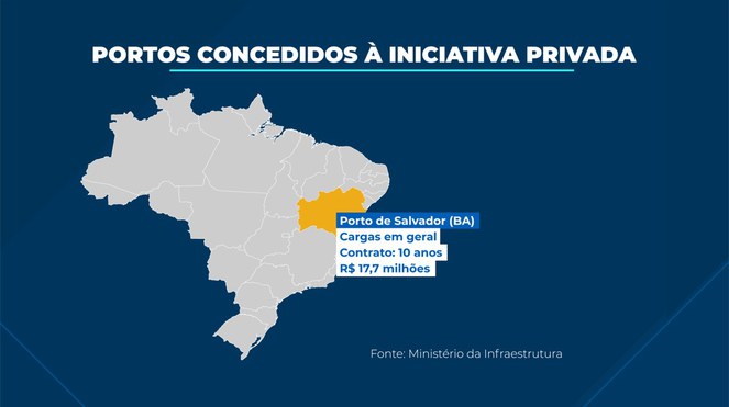 Na concessão do espaço para movimentação de carga geral, de projeto ou contêiner do Porto de Salvador, a vencedora do leilão foi a empresa Intermarítima Portos e Logística S.A, que ofereceu R$ 32 milhões pela outorga. A empresa vai investir cerca de R$ 17,7 milhões durante o prazo de concessão, que é de 10 anos.