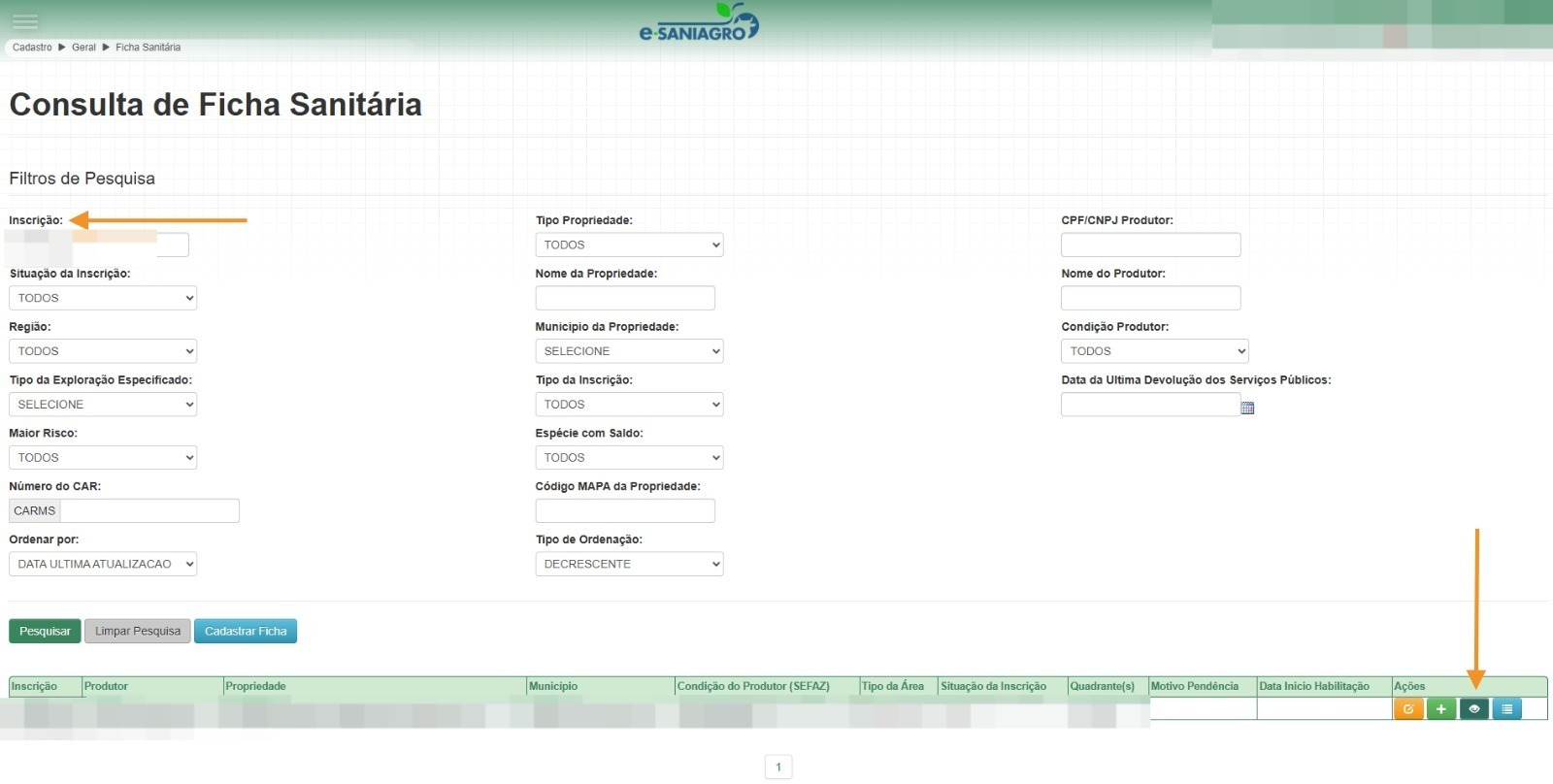 Acessar menu / cadastro / geral / ficha sanitária