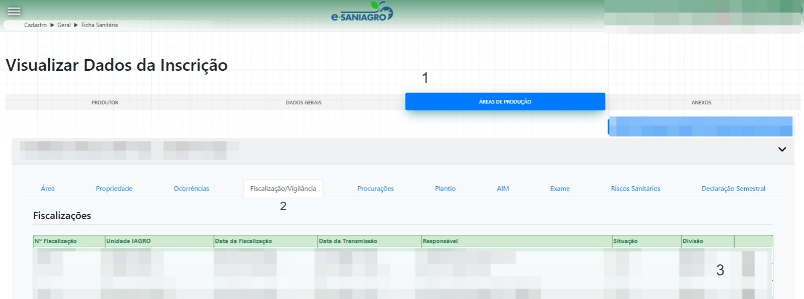 (1) Acessar áreas de produção