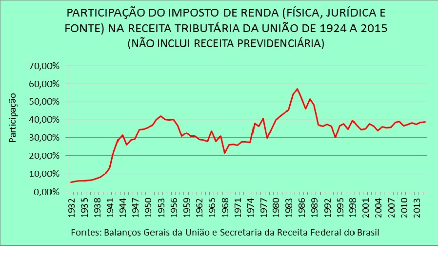 Participação do Imposto de Renda(Física, Jurídica e Fonte) na Receita Tributária da União de 1924 a 2015