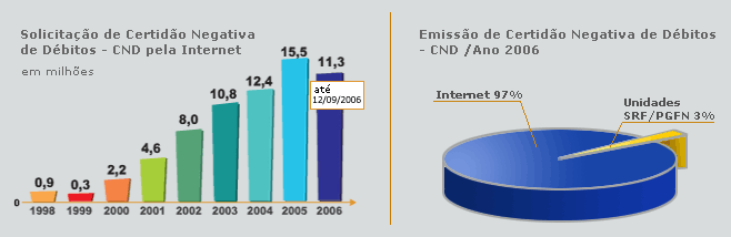 Atualmente, mais de 1 milhão de certidões conjuntas são emitidas por mês via internet, e apenas 30 mil, nas unidades da SRF e PGFN.