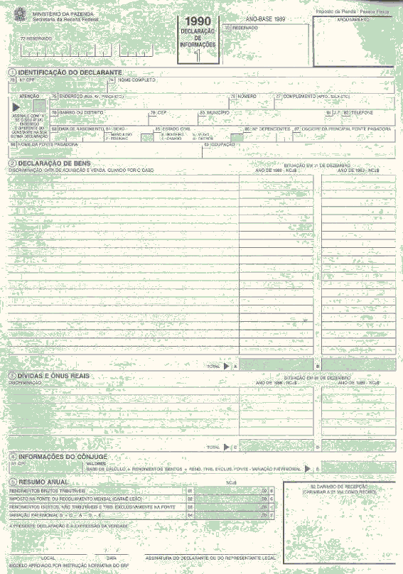 Podia apresentar a Declaração de Informações, entre outros, quem recebeu em 1989 rendimentos sujeitos à retenção na fonte de uma única fonte pagadora superiores a NCz$50.000,00 (cinqüenta mil cruzados novos). A Declaração de Informações era extremamente simples e, como o nome dizia, apenas informativa. Não se apurava saldo de imposto a pagar nem a restituir.