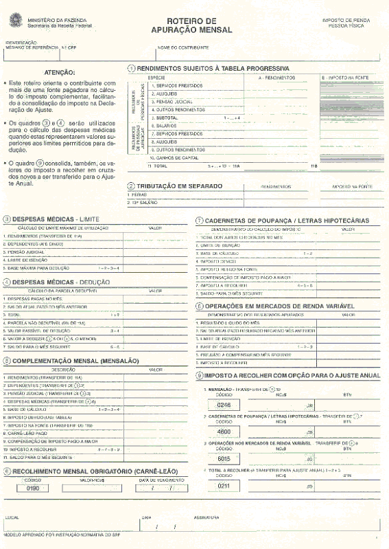 O contribuinte que recebeu rendimentos tributáveis de mais de uma fonte pagadora em um mesmo mês devia apresentar a Declaração de Ajuste. Para cada mês do ano de 1989, devia ser preenchido um "Roteiro de Apuração Mensal", extremamente complexo e trabalhoso. O resultado do imposto a recolher obtido no Roteiro devia ser transportado para a Declaração de Ajuste, para apuração do saldo a pagar. A Declaração de Ajuste não tinha imposto a restituir. Pelo sistema de bases correntes não havia saldo a restituir. Nos casos atípicos de restituição, o procedimento era por meio de processo.