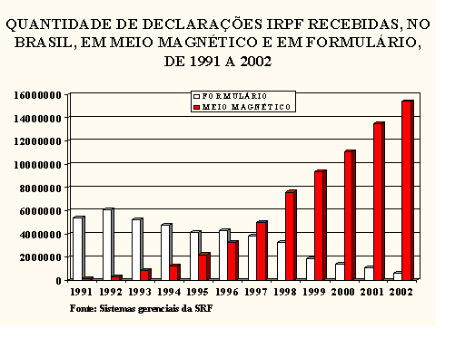 Desde a instituição em 1991, o programa de Imposto de Renda Pessoa Física conseguia mais adeptos. A cada ano, aumentava, em termos reais e nominais, a quantidade de declaração de ajuste anual entregue em meio magnético.