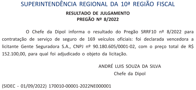 PE 8/2022 - Seguro da frota de veículos da RF10