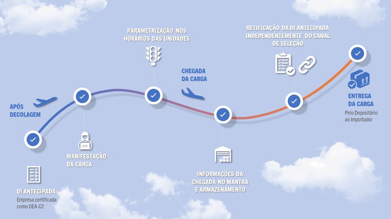 Importante ressaltar que se já tiver ocorrido a chegada da aeronave no destino final ou a presença de carga, não será mais permitido o registro do despacho expresso. Este, no entanto, pode ser feito logo após a decolagem da carga no exterior. As etapas dessa nova modalidade de despacho foram resumidas na figura abaixo: