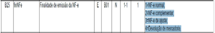 A NF-e tem 4 finalidades, quais sejam: "normal", "complementar", "de ajuste" e "devolução de mercadoria".
