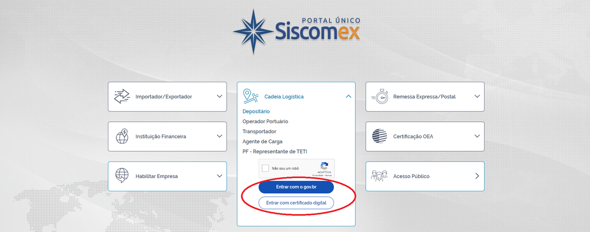 Acesso ao ambiente de operações do Portal Único Siscomex