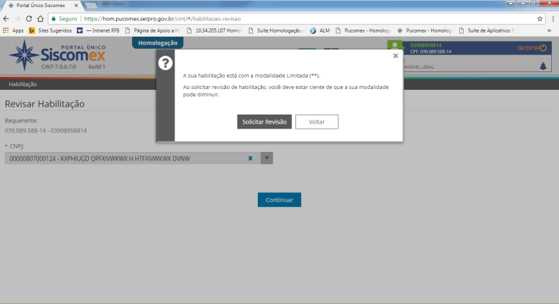 Acesso: Habilitar Empresa/ Cadastro de Intervenientes/ Habilitação/ Revisar Habilitação.