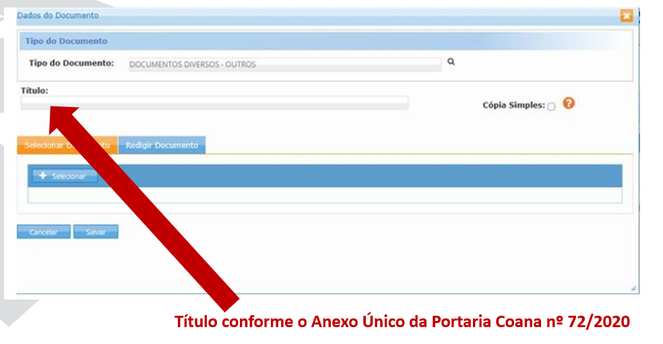 não observar as orientações de juntada de documentos do Anexo Único da Portaria Coana nº 72/2020.