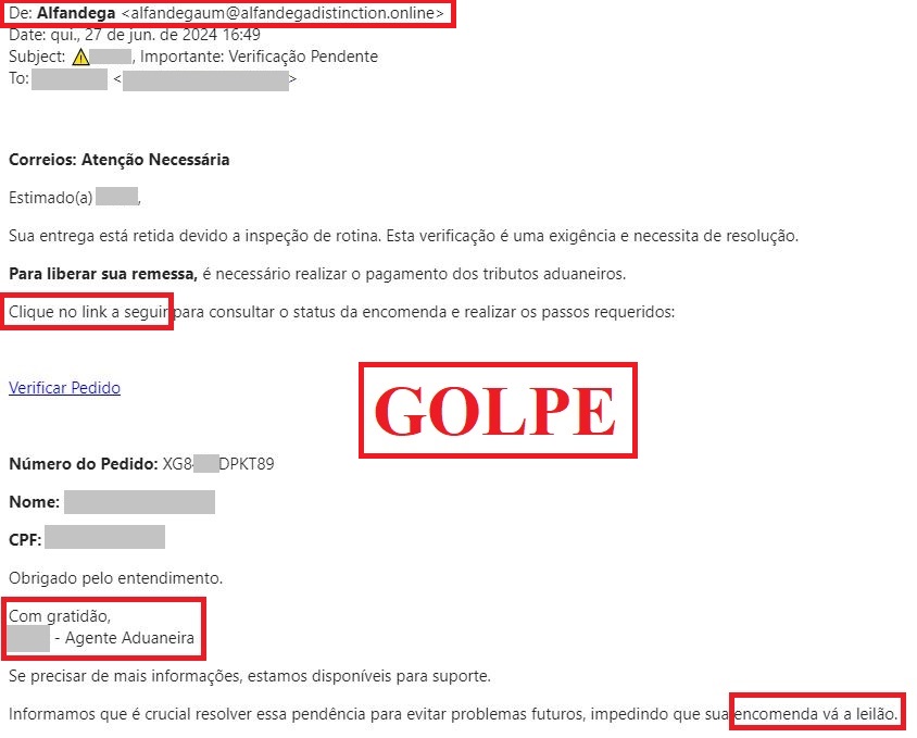 - Desconfie, mesmo que todos os seus dados estejam corretos no e-mail como nome, CPF, endereço e telefone.