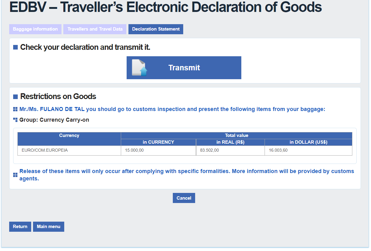 Cancelar declaração