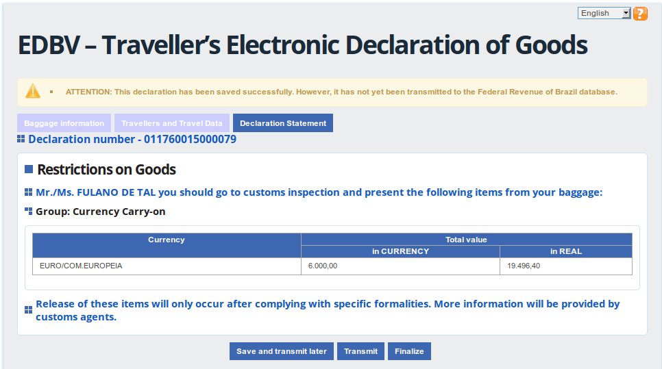 Entregar declaração