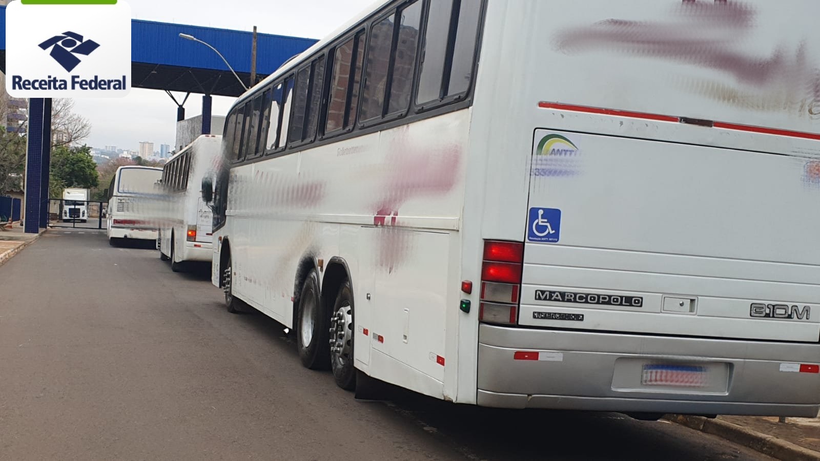 Receita Federal e forças policiais retêm quatro ônibus carregados com mercadorias estrangeiras na região de Foz do Iguaçu