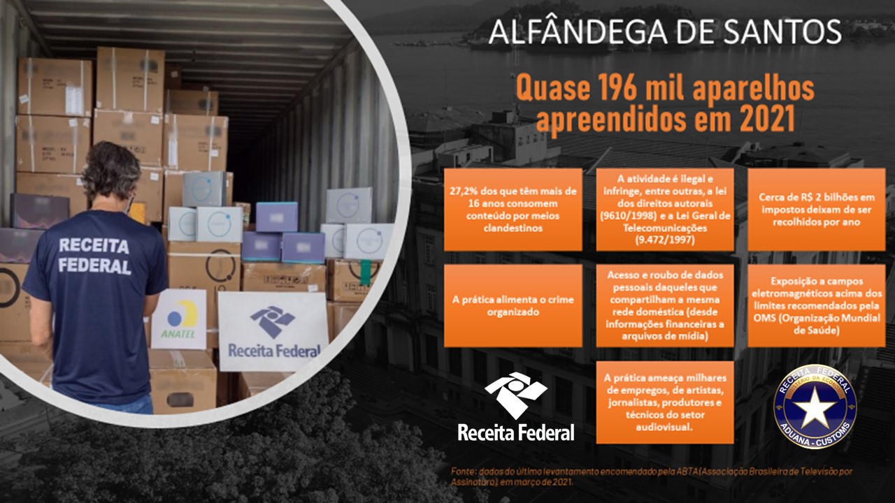 Receita Federal faz novas retenções de aparelhos de TV Box adulterados em Santos/SP