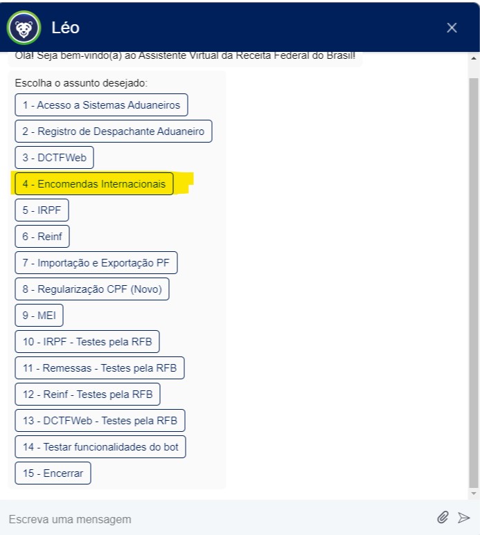 Colabore com o Chatbot de Encomendas Internacionais da Receita Federal