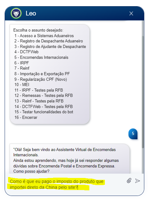 Colabore com o Chatbot de Encomendas Internacionais da Receita Federal