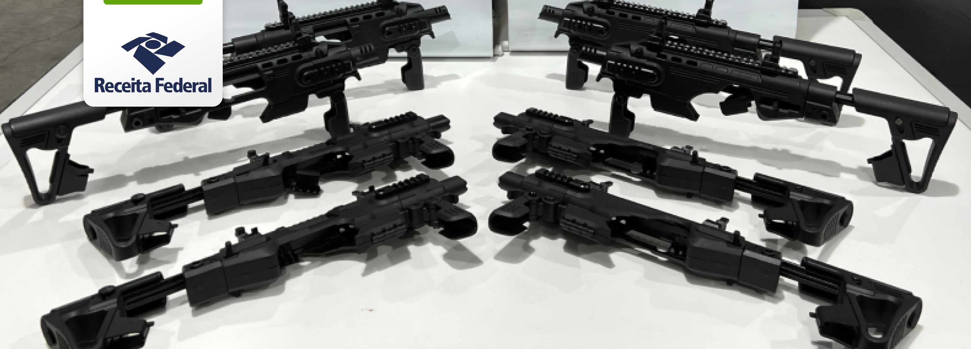 Receita Federal em Santa Maria/RS apreende kits para armamento escondidos em meio a carga de ônibus de passageiros