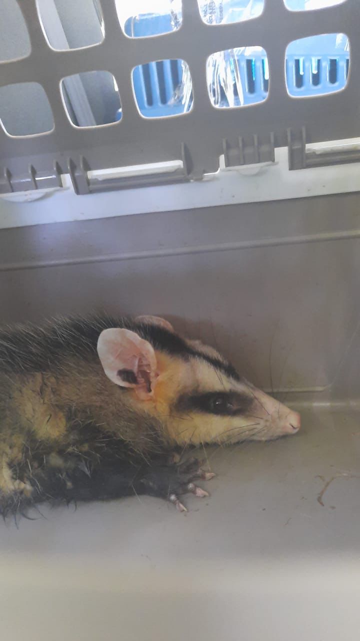 Os gambás estavam armazenados em gaiolas apropriadas para o transporte de animais, porém encontravam-se debilitados.