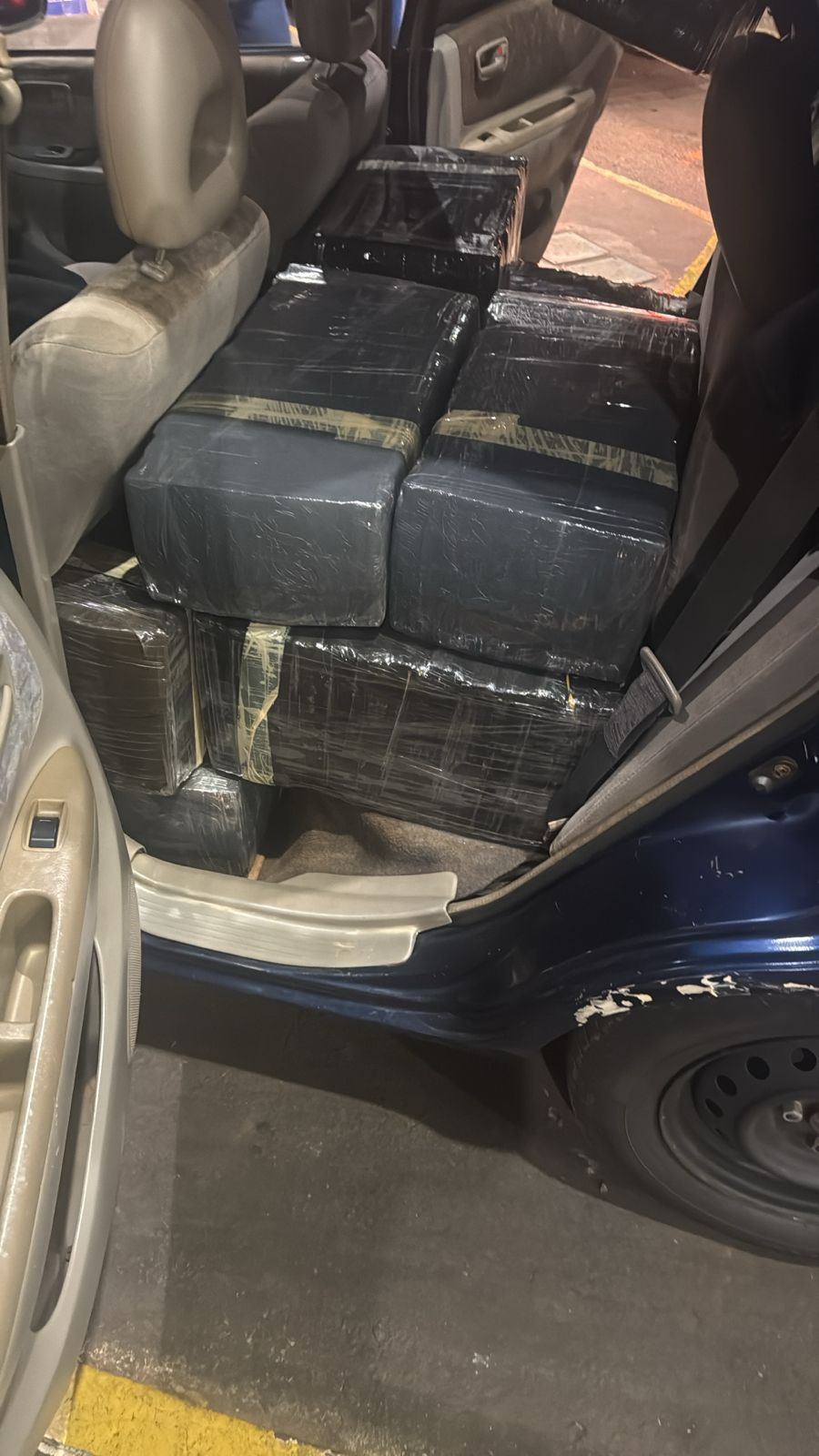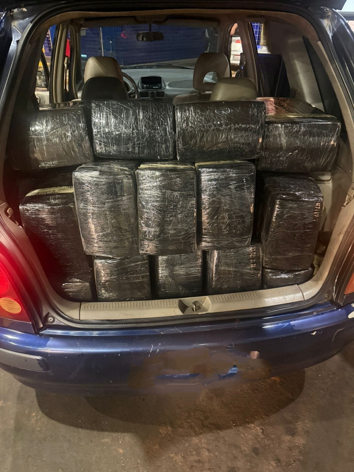 Durante a abordagem, um veículo com placas paraguaias foi submetido à vistoria. No banco traseiro e no porta-malas, os servidores encontraram grande quantidade de droga acondicionada de forma irregular.