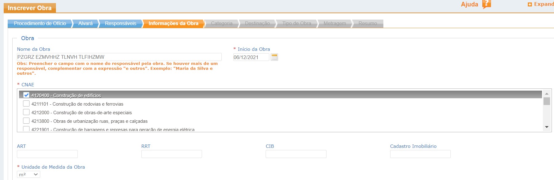 CNO - Cadastros Nacional de Obras