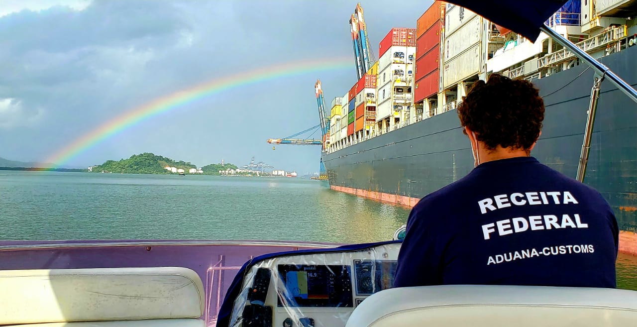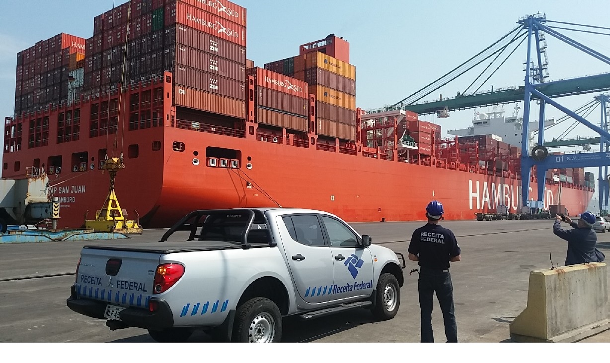 Fotos sobre a atuação da Receita Federal na aduana brasileira.