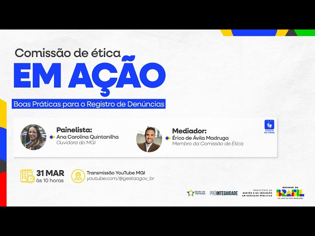 Dia 31 de março, transmissão no canal do MGI no YouTube