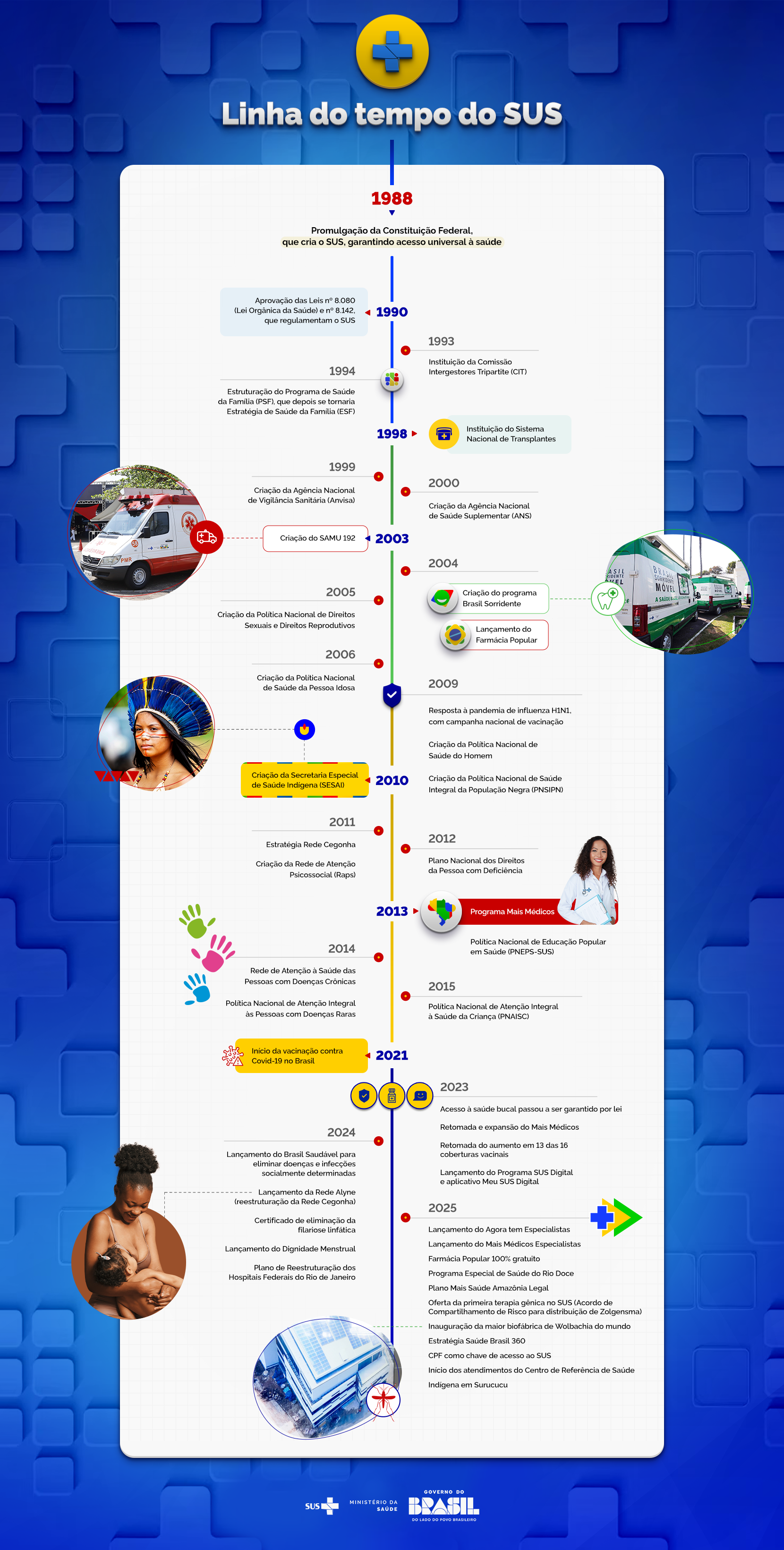abrangendo desde o simples atendimento para avaliação da pressão arterial, por meio da Atenção Primária, até o transplante de órgãos, garantindo acesso integral, universal e gratuito para toda a população do país. Com a sua criação, o SUS proporcionou o acesso universal ao sistema público de saúde, sem discriminação. A atenção integral à saúde, e não somente aos cuidados assistenciais, passou a ser um direito de todos os brasileiros, desde a gestação e por toda a vida, com foco na saúde com qualidade de vida, visando a prevenção e a promoção da saúde.
