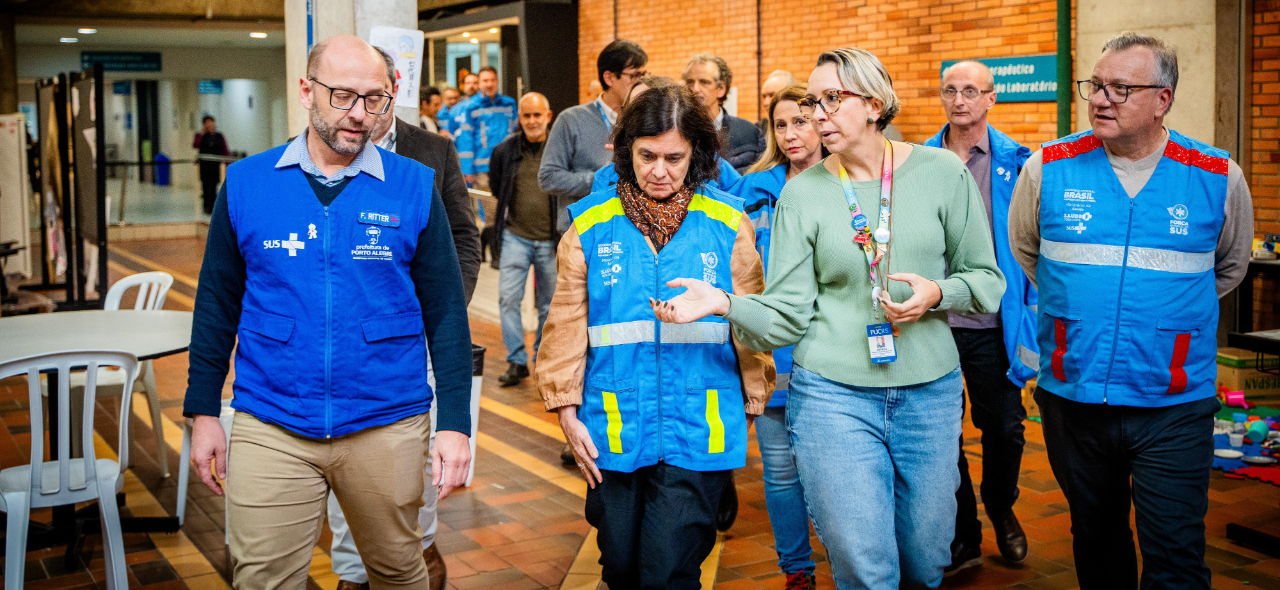 Ministra da Saúde visita hospital de campanha e abrigo em Porto Alegre