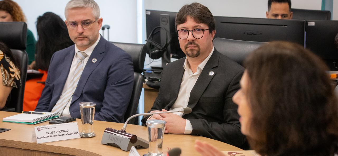 Secretários Adriano Massuda (SAES) e Felipe Proenço (SAPS) participaram do encontro (Foto: Rafael Nascimento/MS)