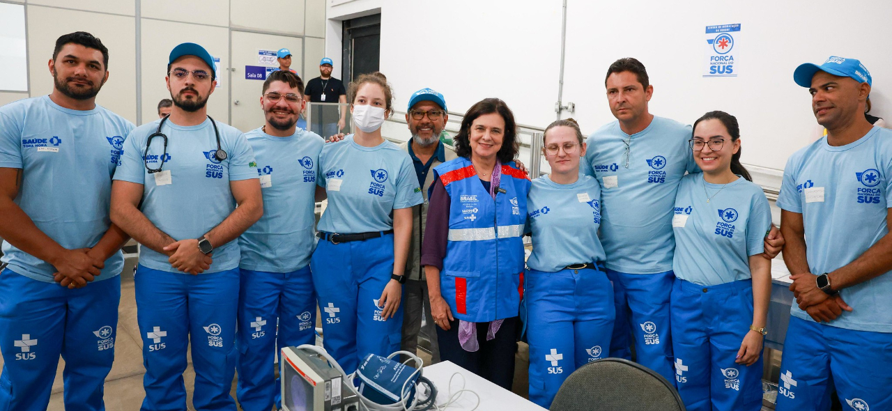 Na foto, profissionais de saúde participam de inauguração de centro de hidratação em São José do Rio Preto, em São Paulo (Foto: Walterson Rosa/MS)