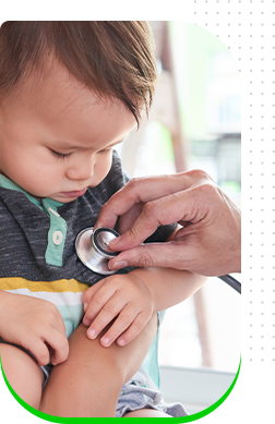 Criança recebendo estetoscópio do médico