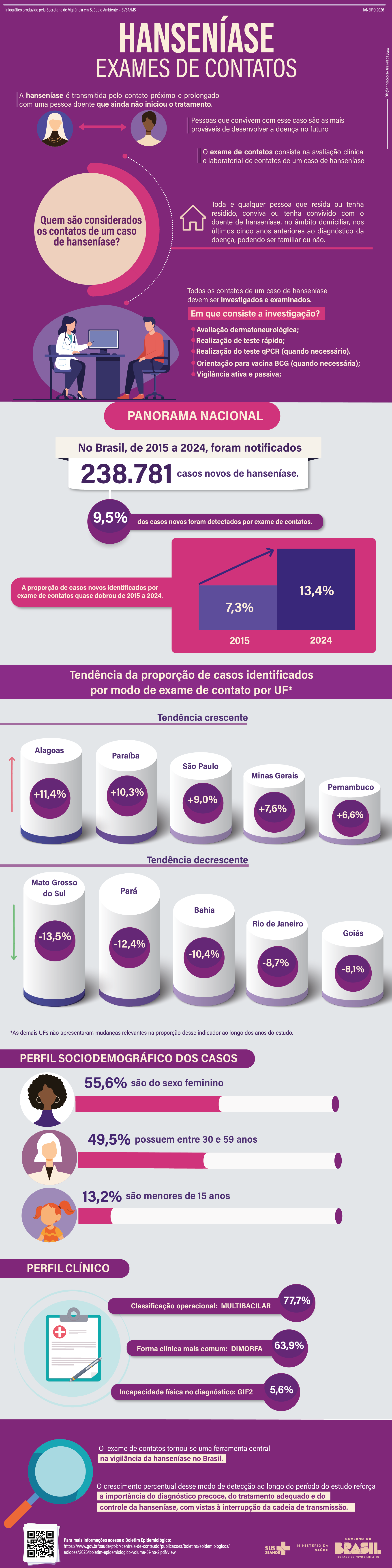 Representação visual de informações sobre exames de contatos sobre hanseníase.