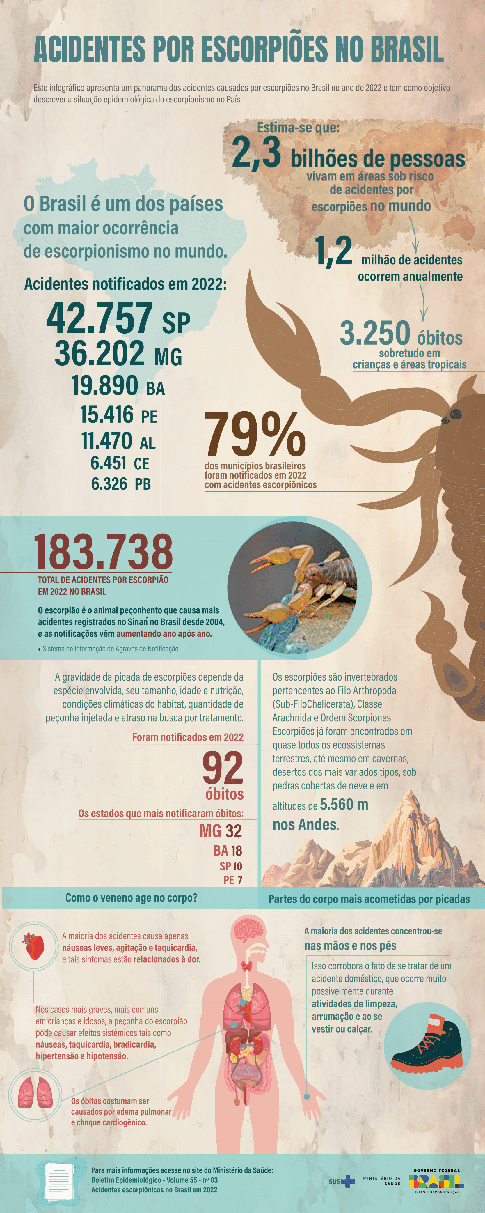 Representação visual dos dados disponíveis no Boletim Epidemiológico Acidentes escorpiônicos no Brasil em 2022