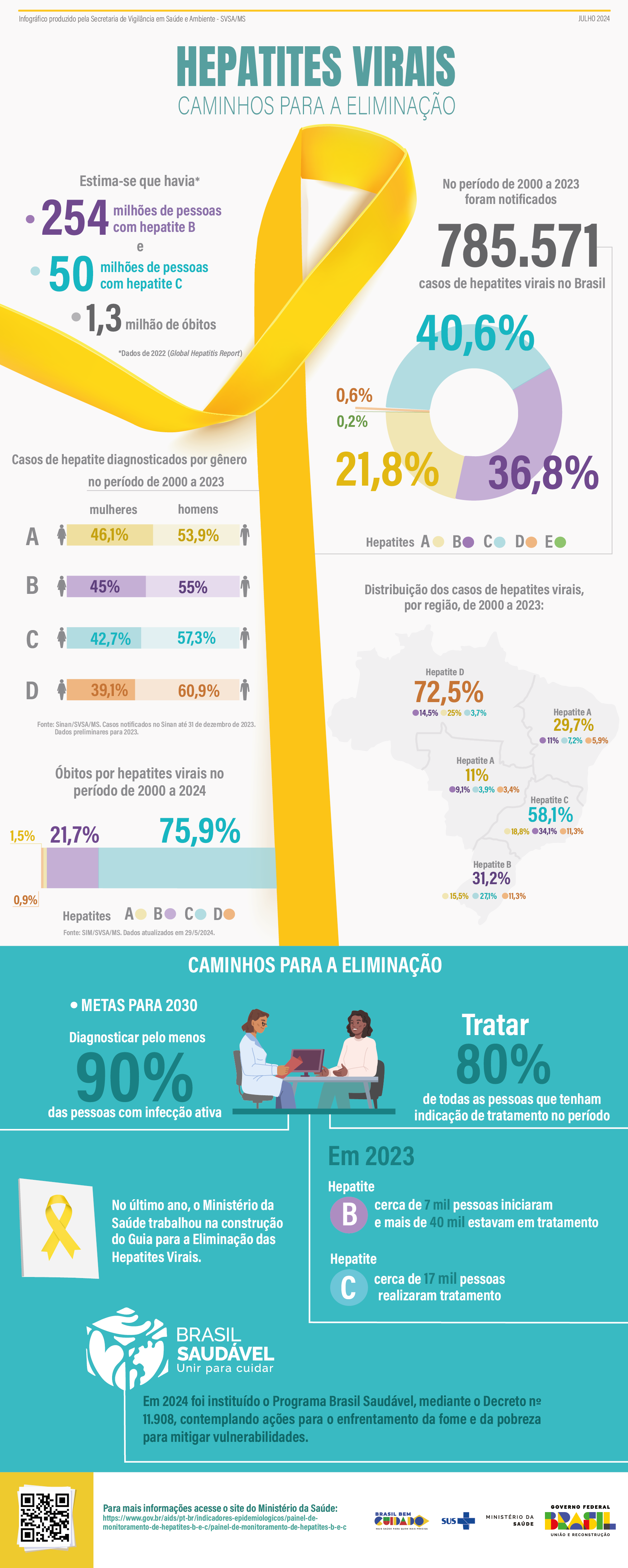 O Boletim Epidemiológico de Hepatites Virais é um instrumento anual de vigilância e gestão, elaborado a partir da consolidação de informações acerca das notificações de casos e óbitos confirmados de hepatites A, B, C, D e E.