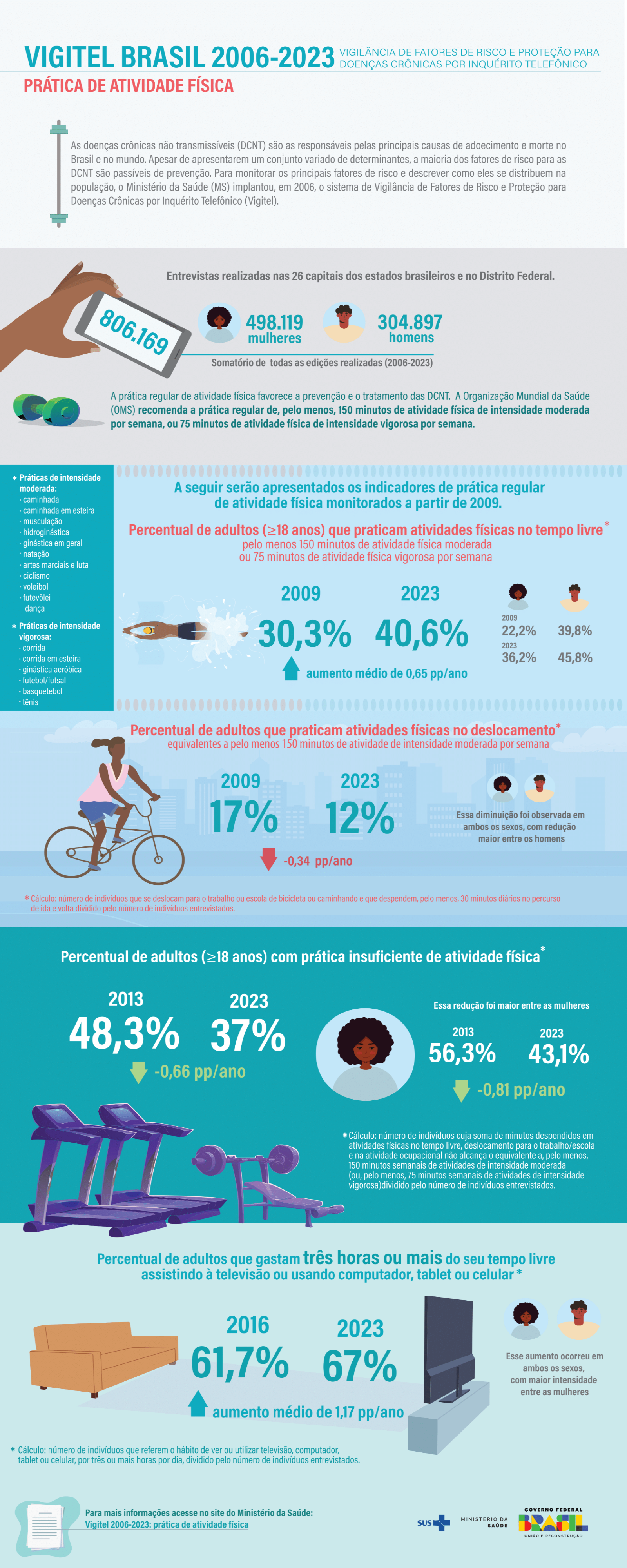 Representação visual dos dados relacionados à prática de atividade física. disponíveis no Vigitel 2006-2023: prática de atividade física