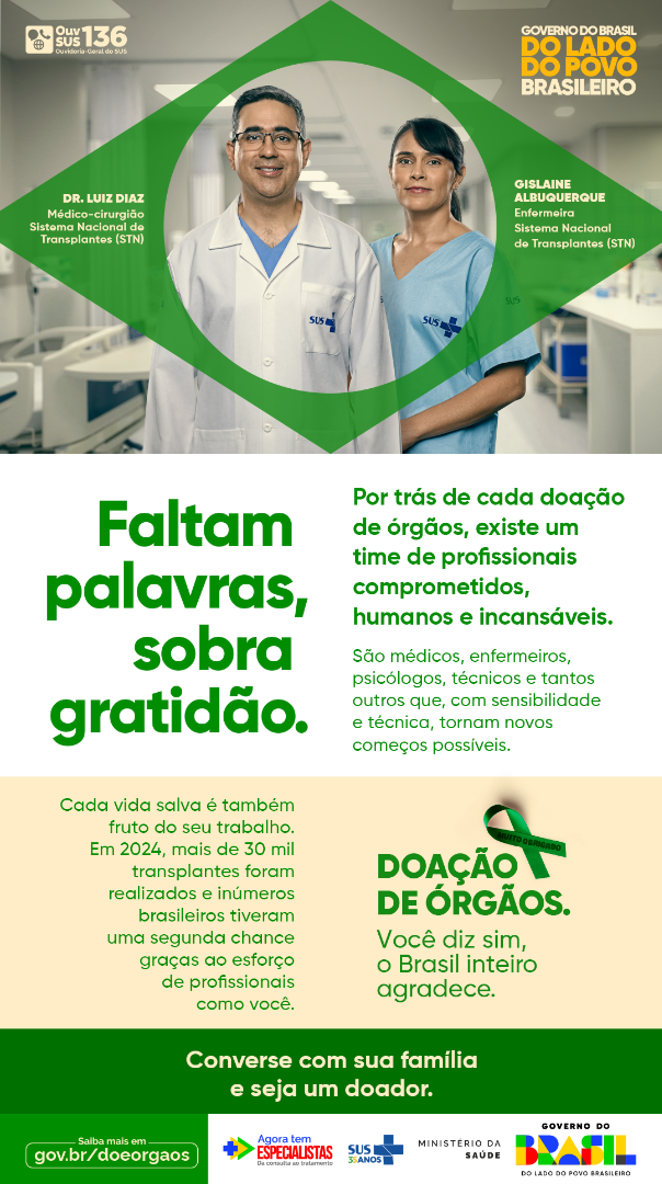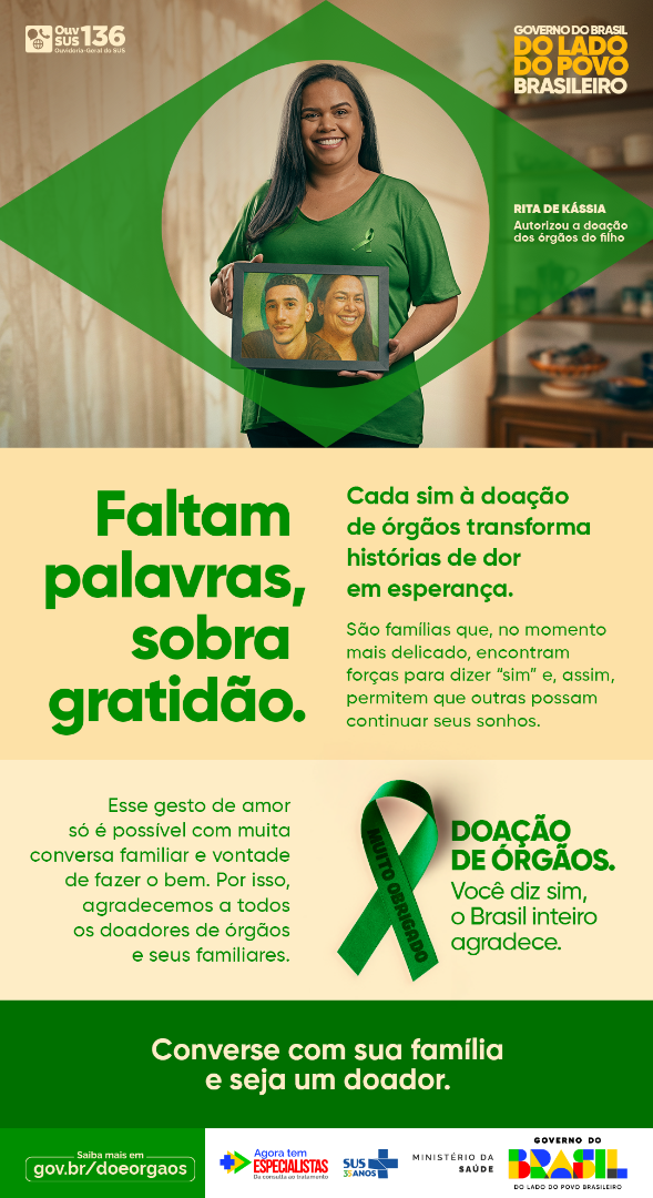 Acesse as peças da Campanha de Doação de Órgãos de 2025 do Ministério da Saúde