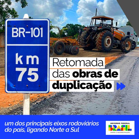 Mais estradas pelo Brasil! O Presidente Lula visita, nesta quarta (15) a obra de duplicação da BR-101/SE, em Maruim, município a 35 km de Aracaju. A obra, que estava paralisada, foi retomada em janeiro de 2023, a partir de recursos viabilizados pela PEC da Transição. O presidente visitará o trecho localizado no km 75 da rodovia.
